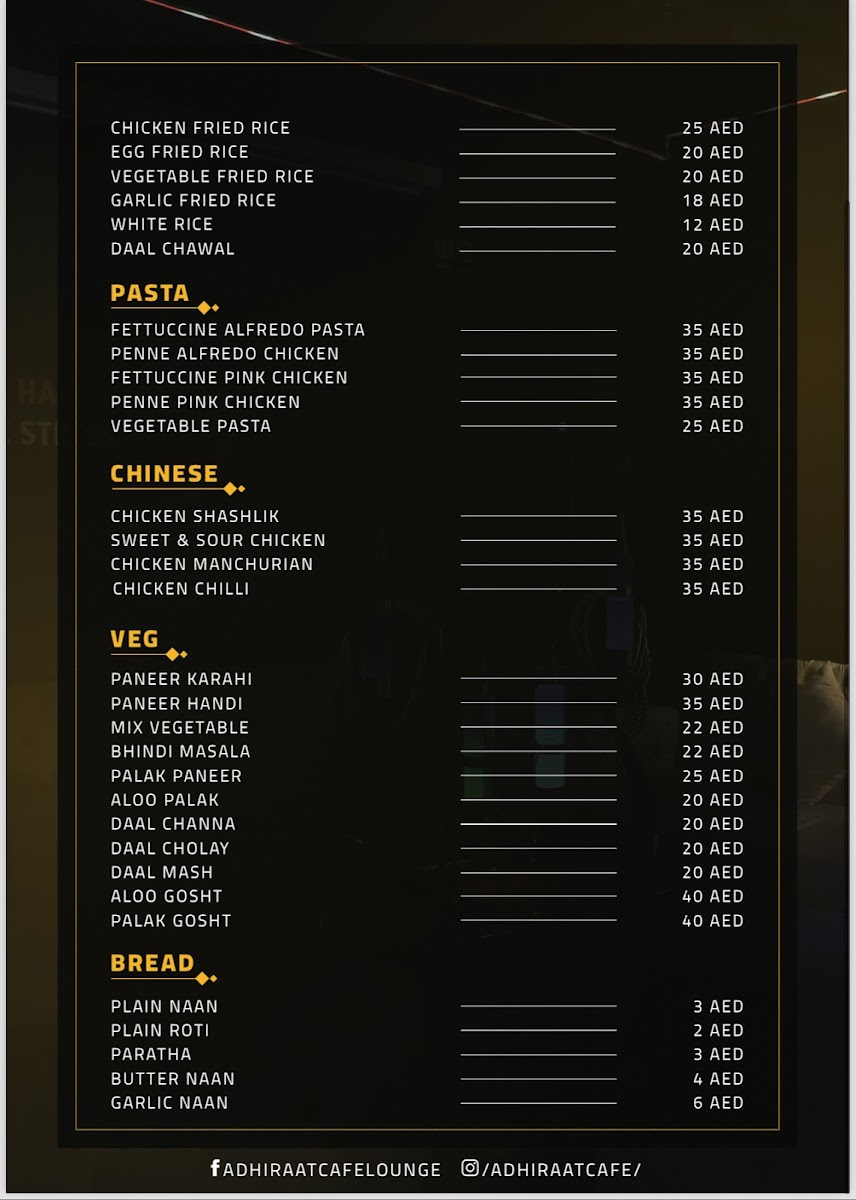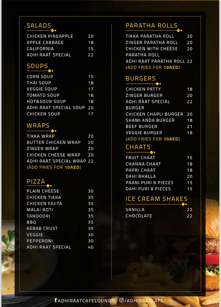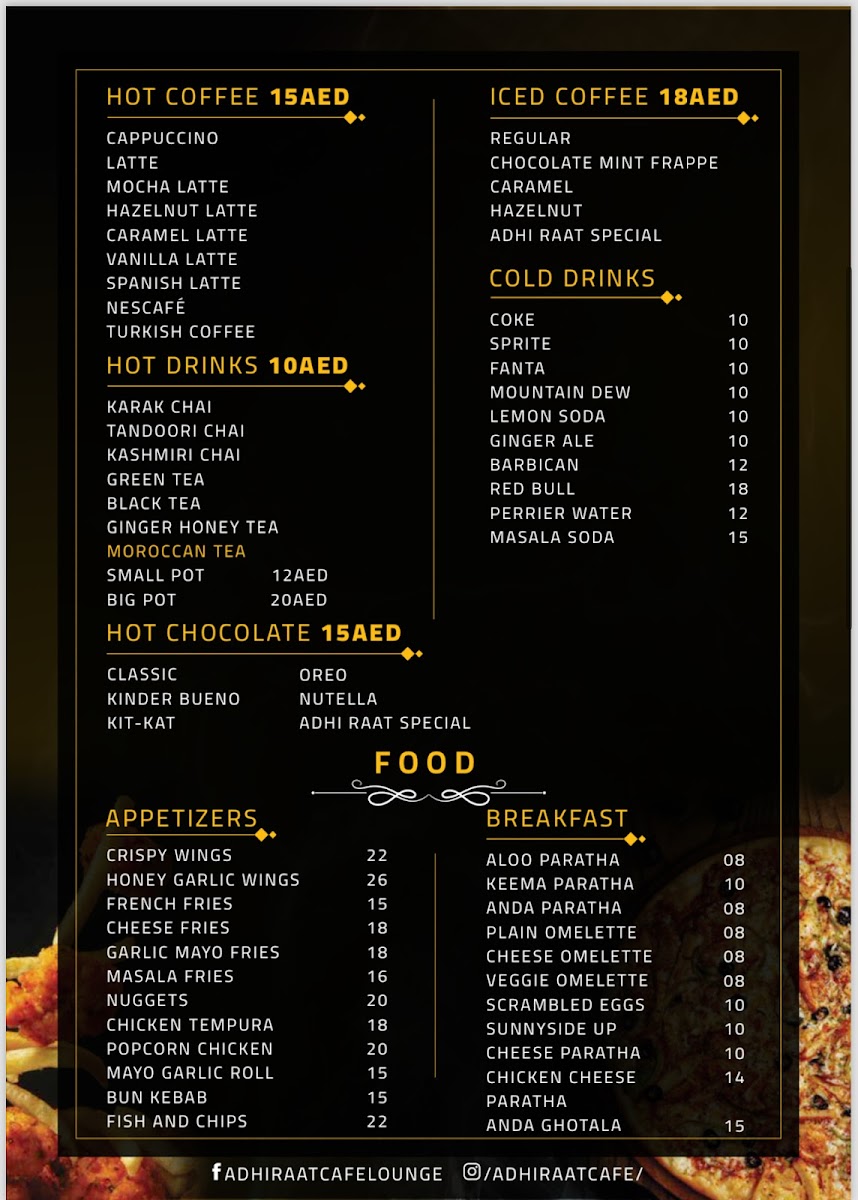 Adhi Raat Cafe And Lounge - Best Russian Shisha in Dubai Menu